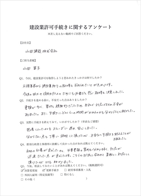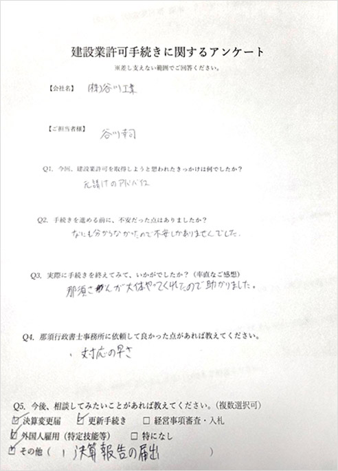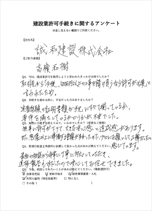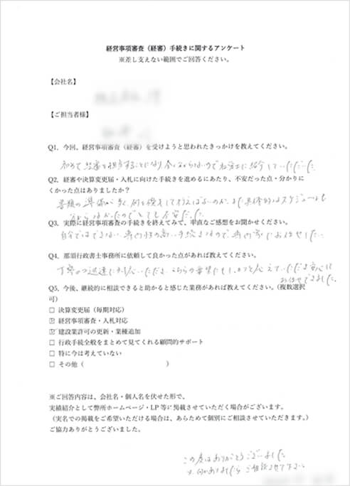 当事業所では一人親方様から上場企業様まで建設業者様の状況に応じて幅広く対応させていただいております。お悩みの方はお気軽にご相談・お問い合わせください。